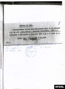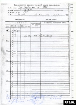 У додатках надсилаю Вам документи: обліково-статистичну картку політв’язня й витяг з акта про те, що вирок виконано.