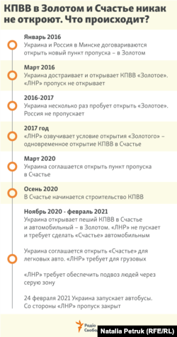 10 ноября 2020 года Украина открыла все пункты пропуска, включая новые КПВВ «Золотое» и «Счастье» в Луганской области, но группировки «ЛДНР» блокируют их работу.