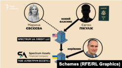 Фонд гарантування вкладів фізичних осіб розірвав договори зі «Спектрум Ессетс» – компанією-переможницею державного аукціону, власниця якої Марина Євсєєва, як встановили «Схеми» (Радіо Свобода) під час викупу активів ліквідованих російських банків, приховала від українських органів влади своє російське громадянство.